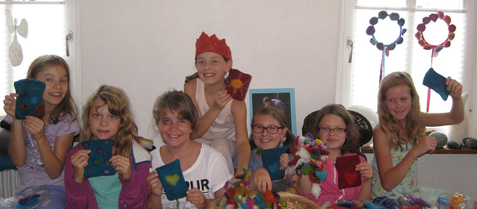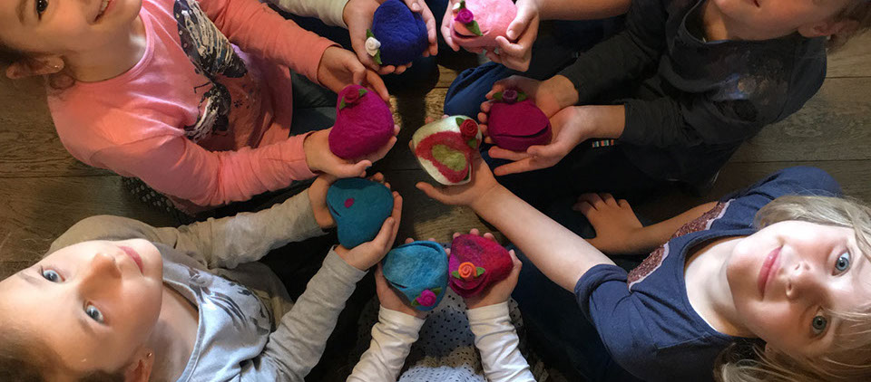 Nachdem es schon viele wunderschöne Kindergeburtstage in der Filzstube gab, garantiere ich Ihnen, dass die Kinder gemeinsam viel Spaß haben werden und beglückt und stolz ein selbstgemachtes Filzunikat mit nach Hause nehmen!