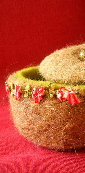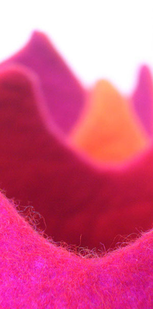 Das Filzhandwerk stellt eine faszinierende, uralte, traditionelle Kulturtechnik dar. Nach wissenschaftlichen Schätzungen wurde bereits in der mittleren Steinzeit gefilzt. Diese Ursprünglichkeit des Filzens liebe ich, genauso wie ich die Herkunft des verwendeten Rohstoffes liebe: die Schafwolle. Schafwolle ist ein natürliches, archaisches und erdendes Material, und ich freue mich über die Wertschätzung, welche diese durch das Filzen erhält.
